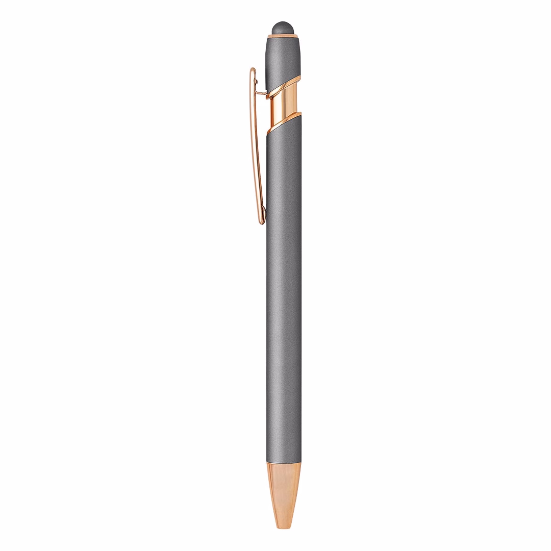 Dodajte dozu elegancije i funkcionalnosti uz ARMADA GOLD metalnu hemijsku olovku. Ova moderna olovka kombinuje klasičan dizajn sa inovativnom „touch“ funkcijom, omogućavajući jednostavno korišćenje na ekranima osetljivim na dodir. Napravljena od aluminijuma sa gumiranom površinom, pruža udobno pisanje i sofisticiran izgled.